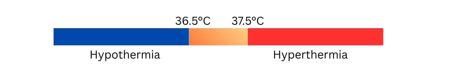 - Hypothermia (low body temperature less than 36.5o C), especially in the first days after birth due to large surface area to body mass ratio, limited brown fat, limited subcutaneous fat and thin skin