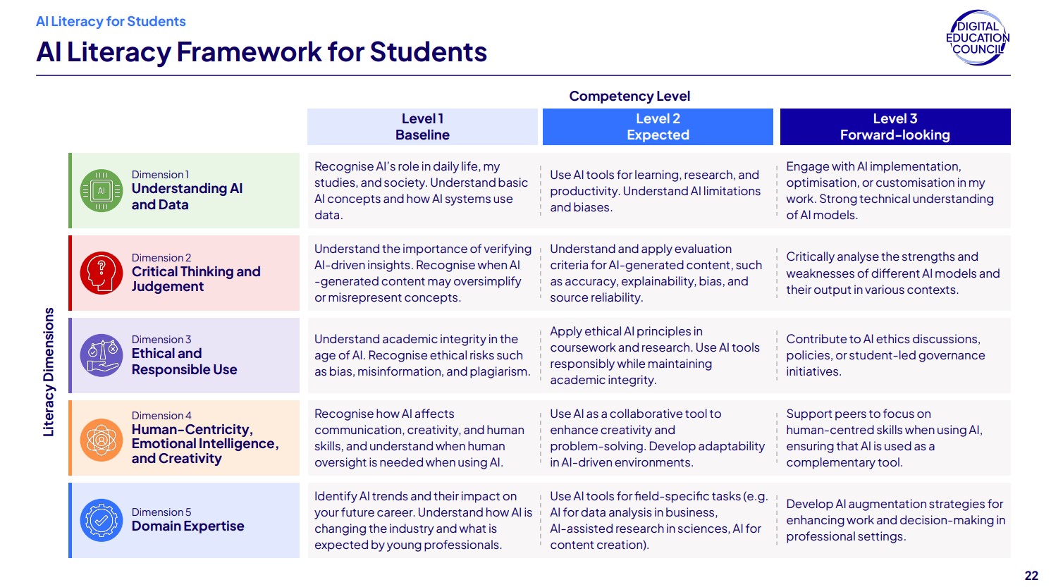 Source: Digital Education Council, DEC AI Literacy Framework , 2025.