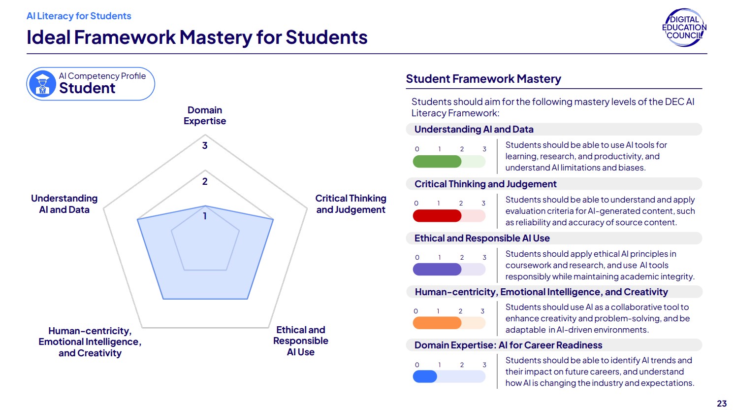 The Digital Education Council (Australia) has created an AI framework for students and suggests aiming for the mastery levels below.